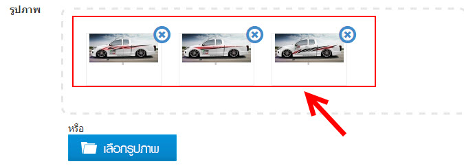 เลือกภาพสินค้าได้มากถึง 8 ภาพ และยังสามารถเลือกอัพโหลดภาพกันทีเดียวได้หลายๆภาพ สามารถเลื่อนตำแหน่งภาพให้แสดงได้อีกด้วยครับเรามาดูการใช้งานกันดีกว่าครับ