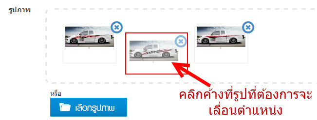 5. เมื่อต้องการเลื่อนตำแหน่งของภาพก็ให้ทำการคลิกค้างที่ภาพนั้นๆแล้วเลื่อนไว้ตำแหน่งที่ต้องการได้เลยครับ ภาพแรกจะนำมาแสดงที่รายการสินค้าครับ